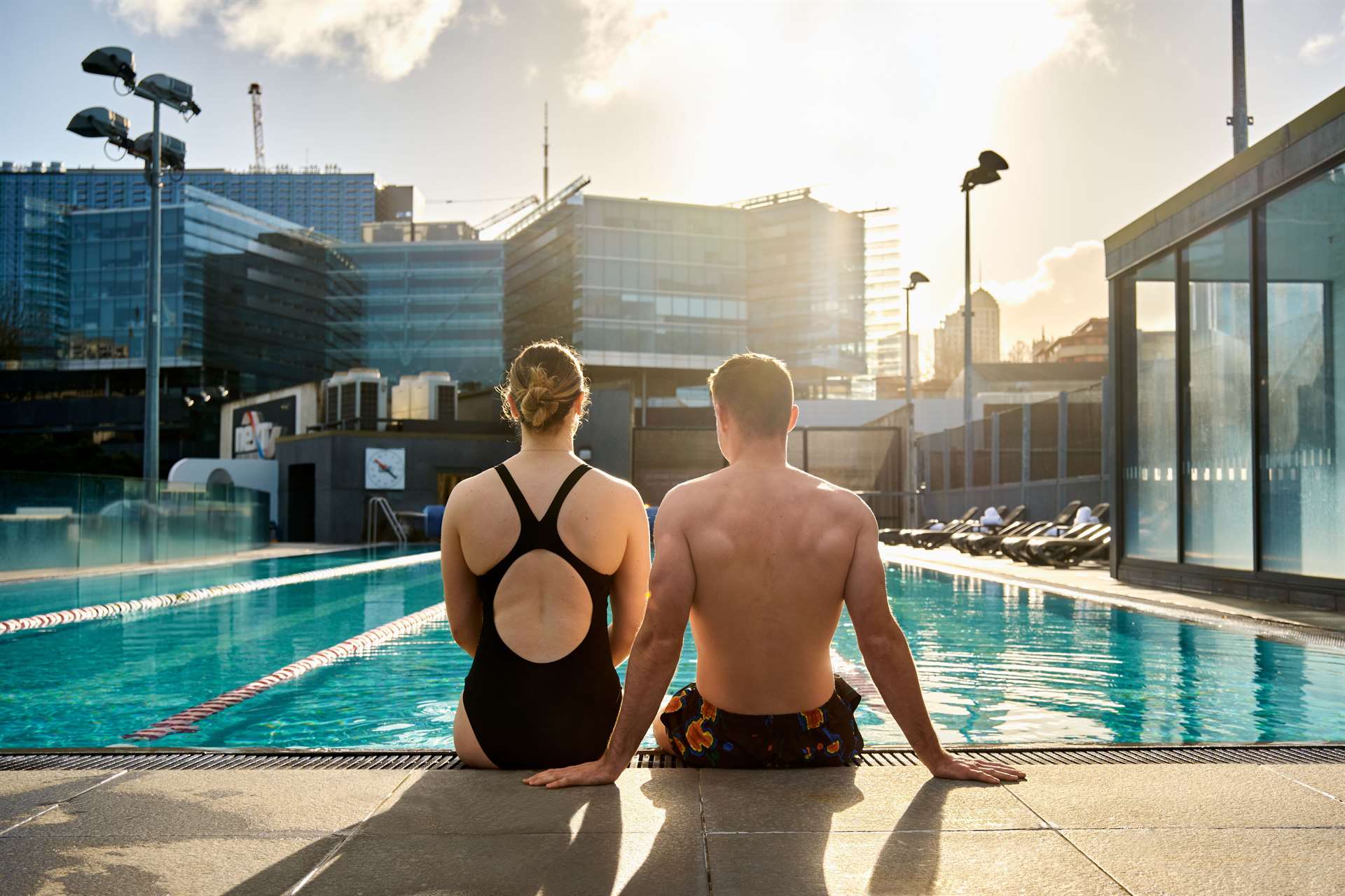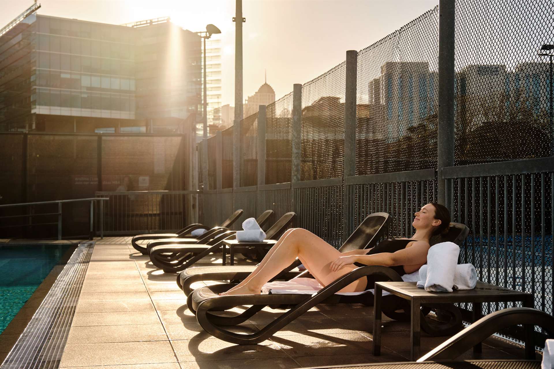 - Outdoor rooftop pool area with resort-style facilities and city views