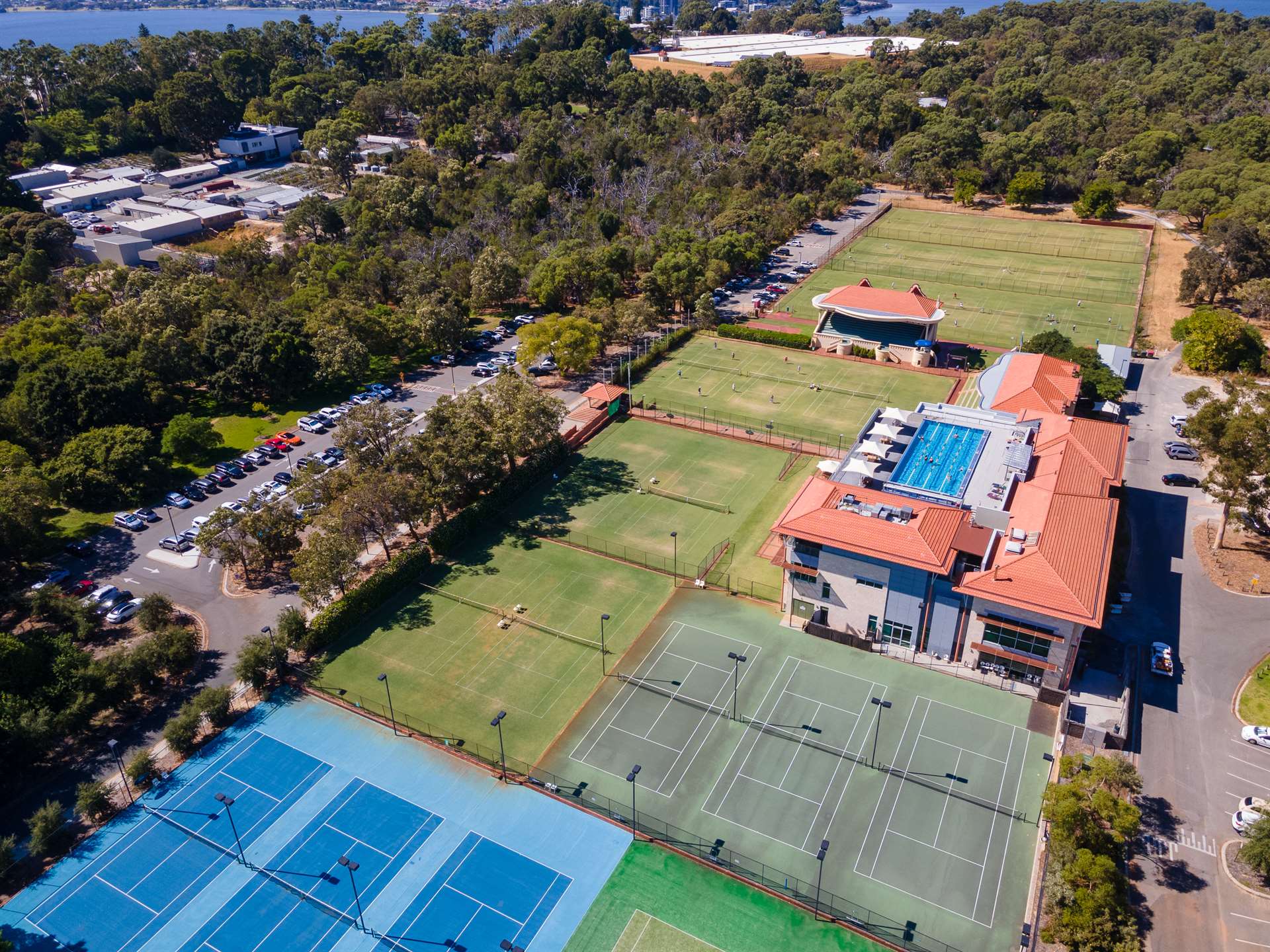 - 30 tennis courts on a variety of playing surfaces
