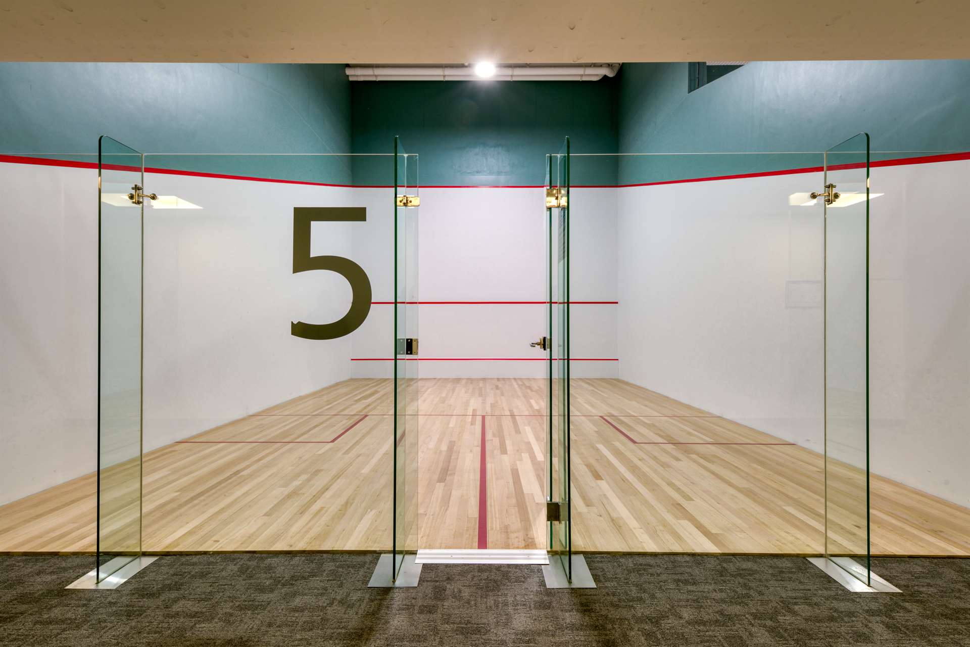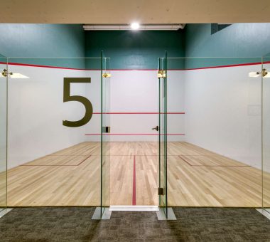 - 5 glass-backed squash courts